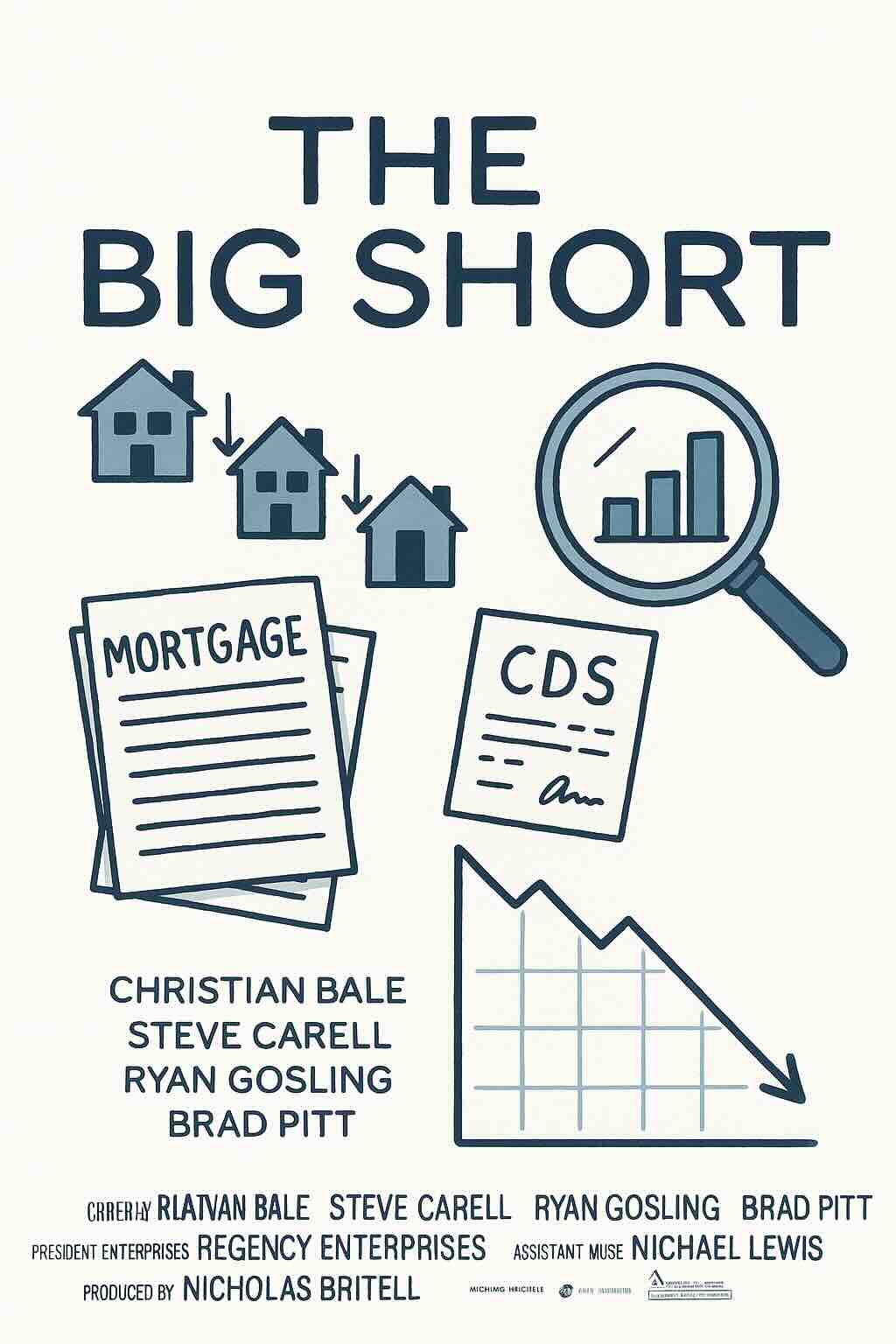 영화 <빅쇼트>는 2008년 금융위기의 촉발 요인을 주택시장 거품과 구조화증권의 오작동으로 압축한다. NINJA 대출 같은 부실 모기지가 모여 MBS·CDO로 포장되고, 신용평가·규제·보상체계가 동시에 실패하면서 위험이 시스템에 축적되었다. 소수의 투자자들은 CDS(신용부도스와프) 를 이용해 이 거품에 ‘숏’을 걸었고, 거품이 꺼지자 파생상품의 레버리지가 실물·금융을 동시에 흔들었다.